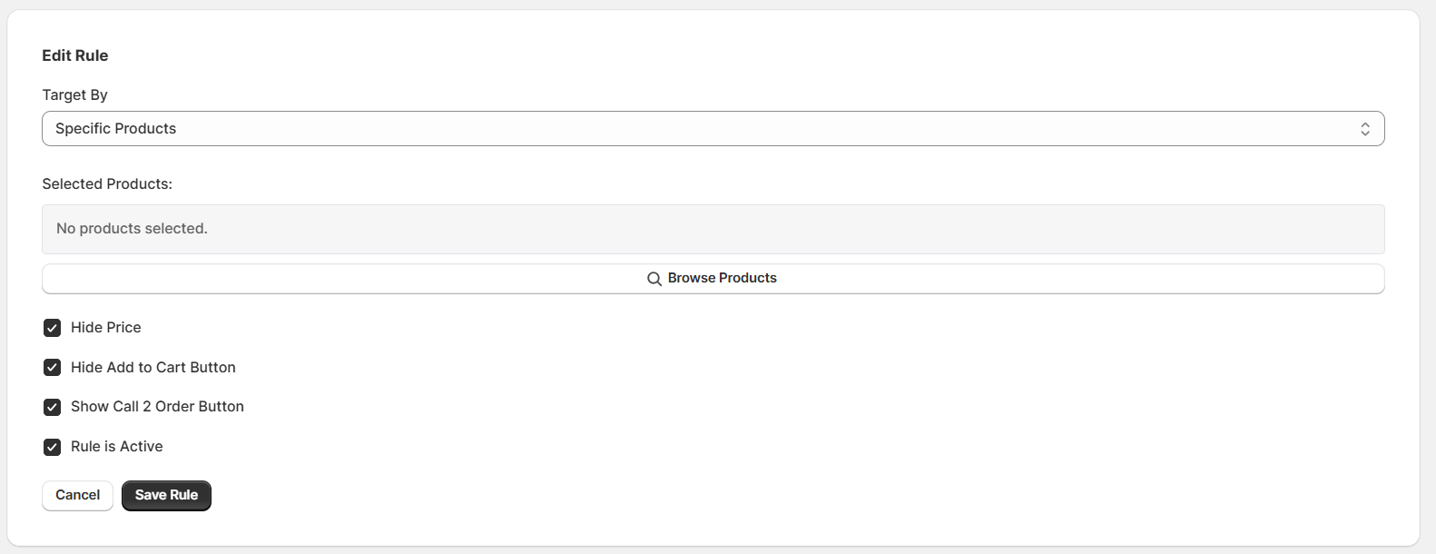Choose how you want to target products, such as by product, tag, type, or vendor.