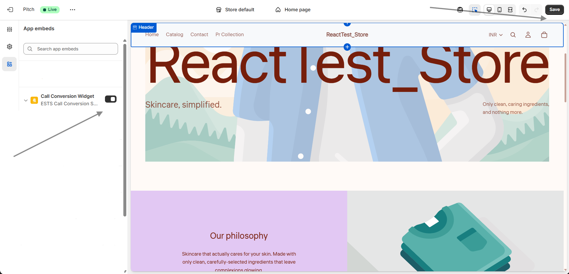 Add the “Call Conversion Widget” from App Embeds or Blocks.