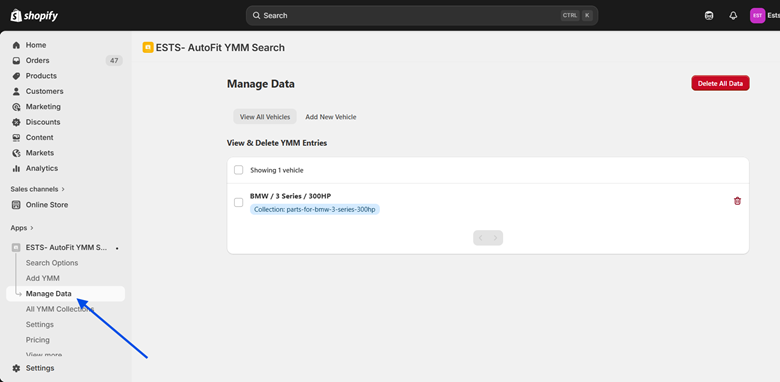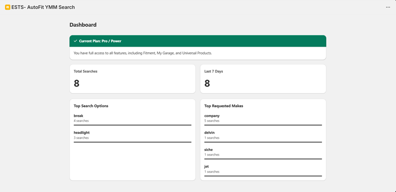 Once customers start interacting with the vehicle search on your storefront, activity data will start appearing here.