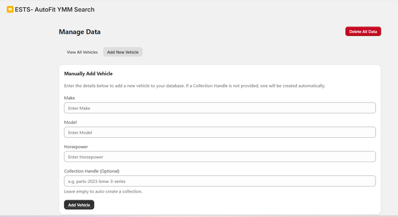 Manually add a new vehicle using “Add New Vehicle”
