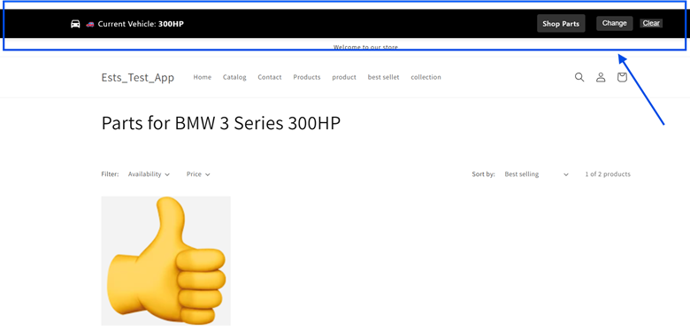 Once enabled, customers will see their selected vehicle at the top of the store.