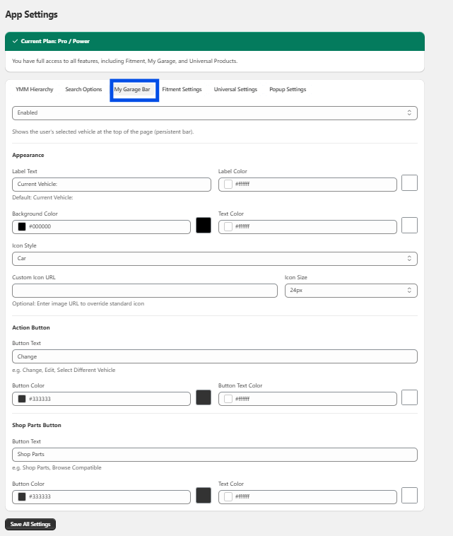 Fitment setting displays compatibility information directly on product pages.