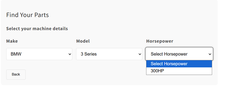 Make → Model → Horsepower