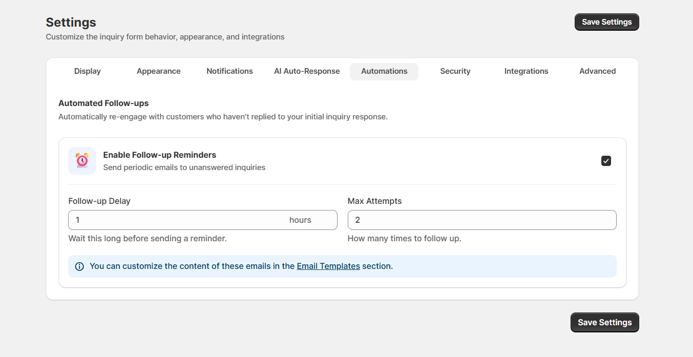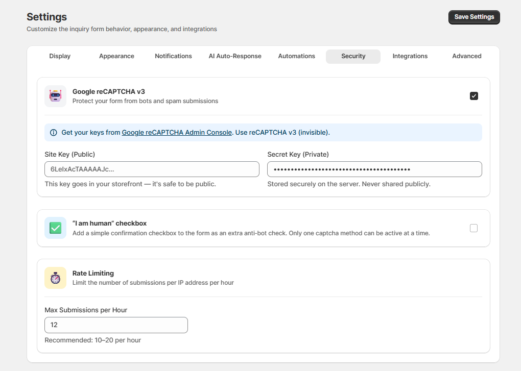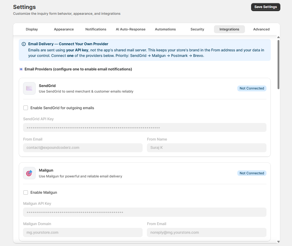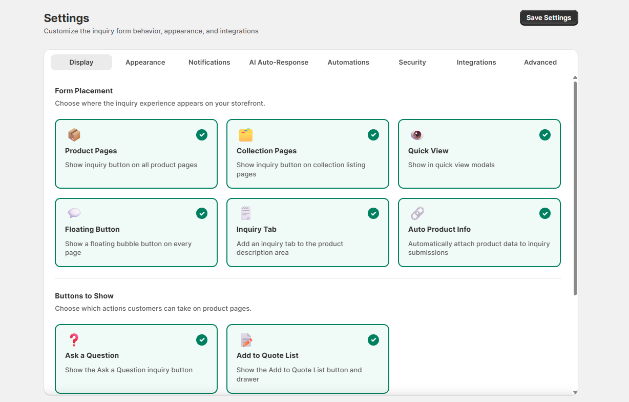 Whenever a customer submits an inquiry or quote request, the app can send email notifications to both the customer and the store admin. This ensures that inquiries are promptly addressed and no potential leads are missed.