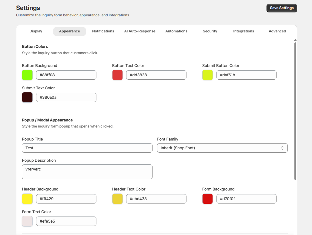 The app allows you to create a customizable "Ests InquirePro" form that can be added to your product pages. Customers can use this form to ask questions about specific products or request additional information.