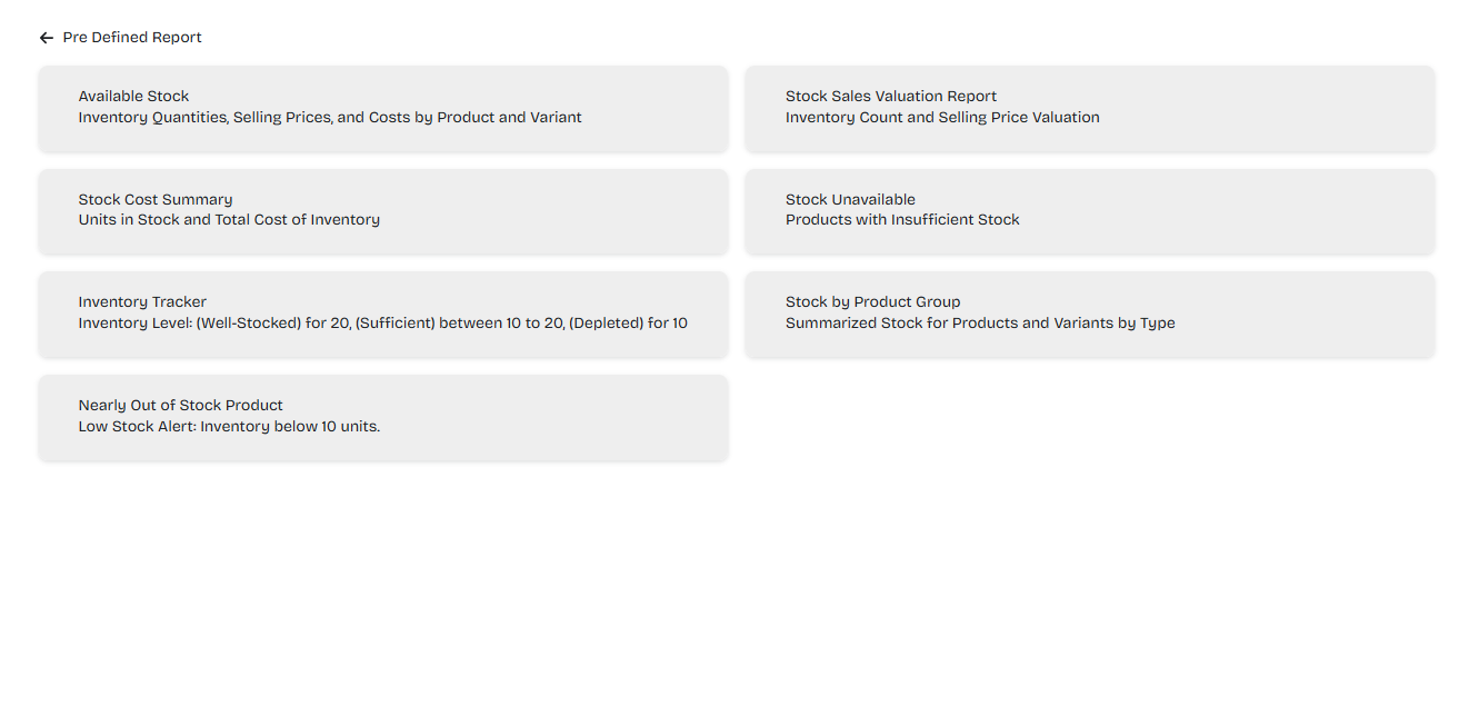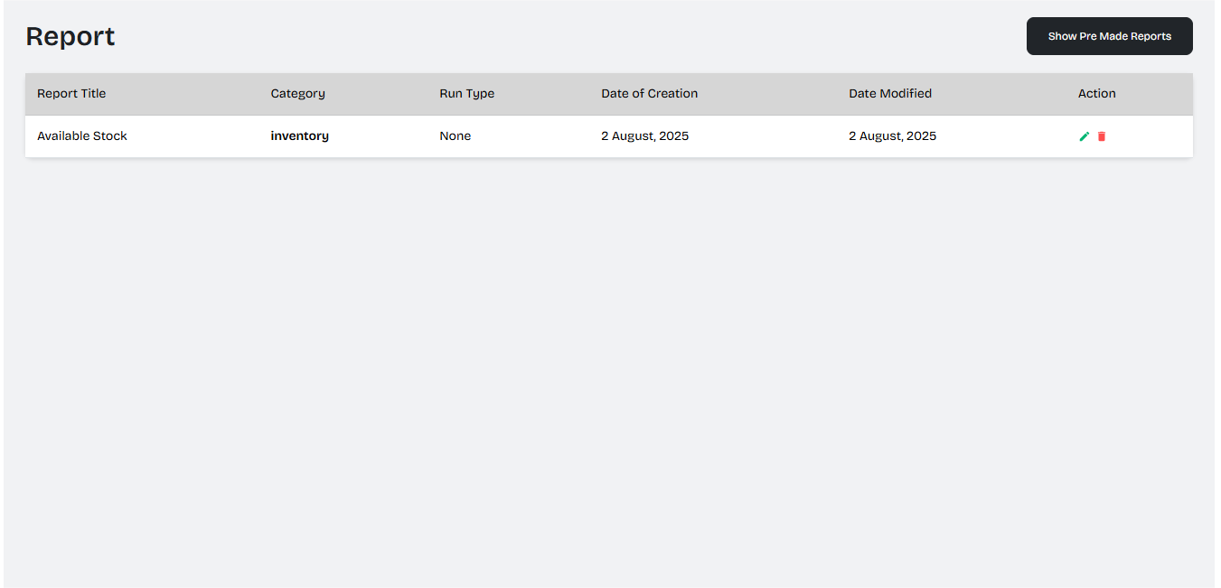 Click on the "Show Pre-Made Report" button to display a list of predefined inventory reports.