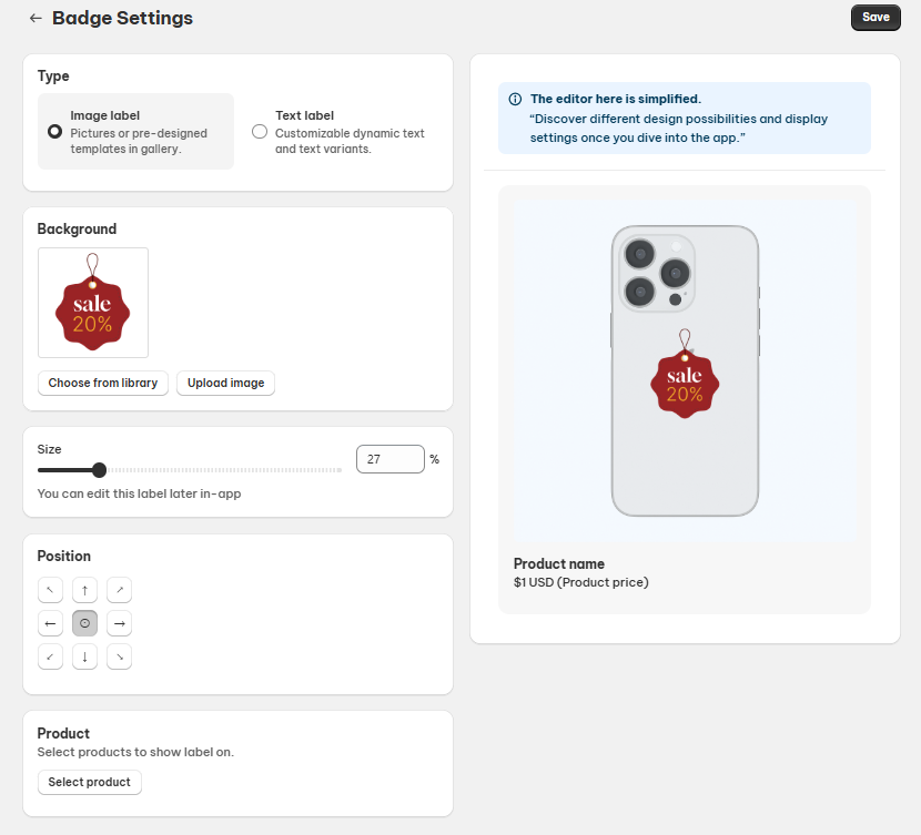 "The Advanced Plan also includes a premium feature that allows you to display badges on products in image format. You can configure this under the Badge Label Settings tab, where you can also choose specific products on which you want the badges to appear."