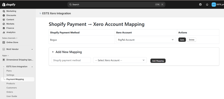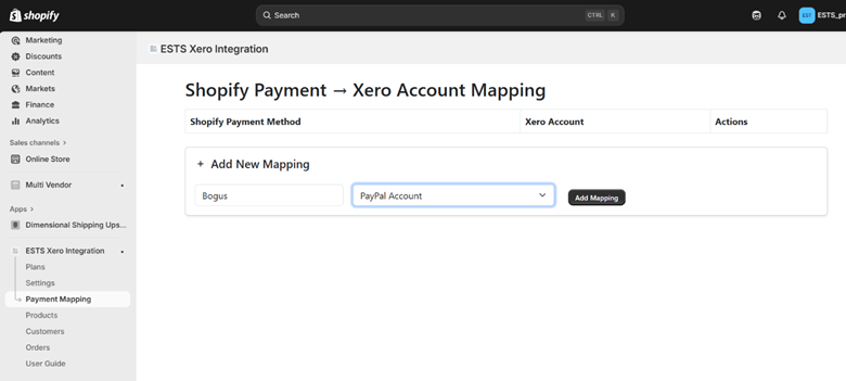 Xero account that you wish to attach it e.g. “PayPal”. Click on “Add Mapping”