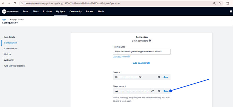 Similarly copy the “Client Secret “and paste in the “XERO_CLIENT_SECRET”