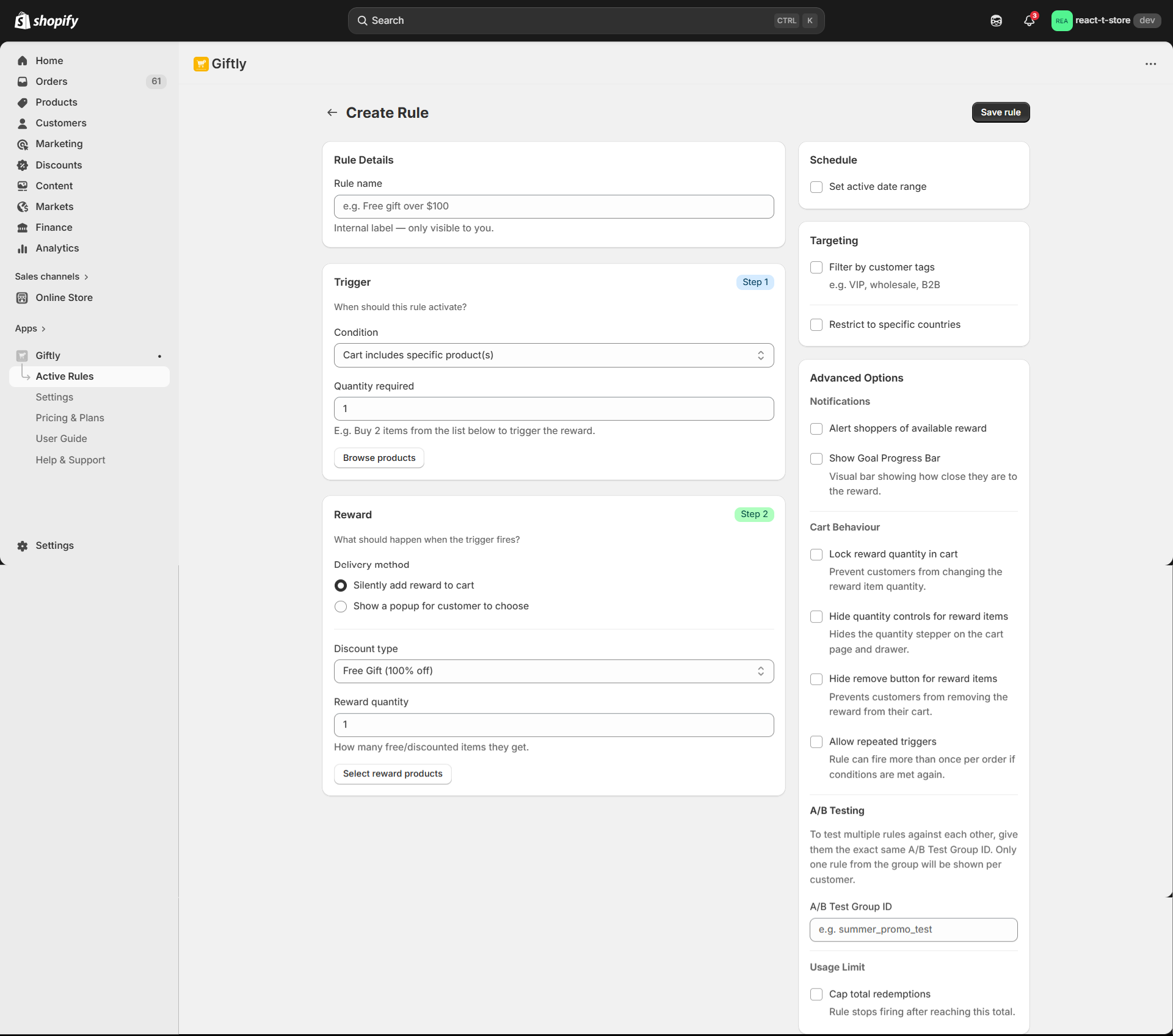 It helps you automatically add free gifts, rewards, discounts, or popup offers when customers meet specific cart conditions.