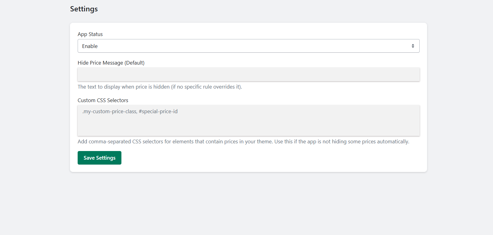The app ESTS B2B Lock & Hide Price opens. It will look like this.