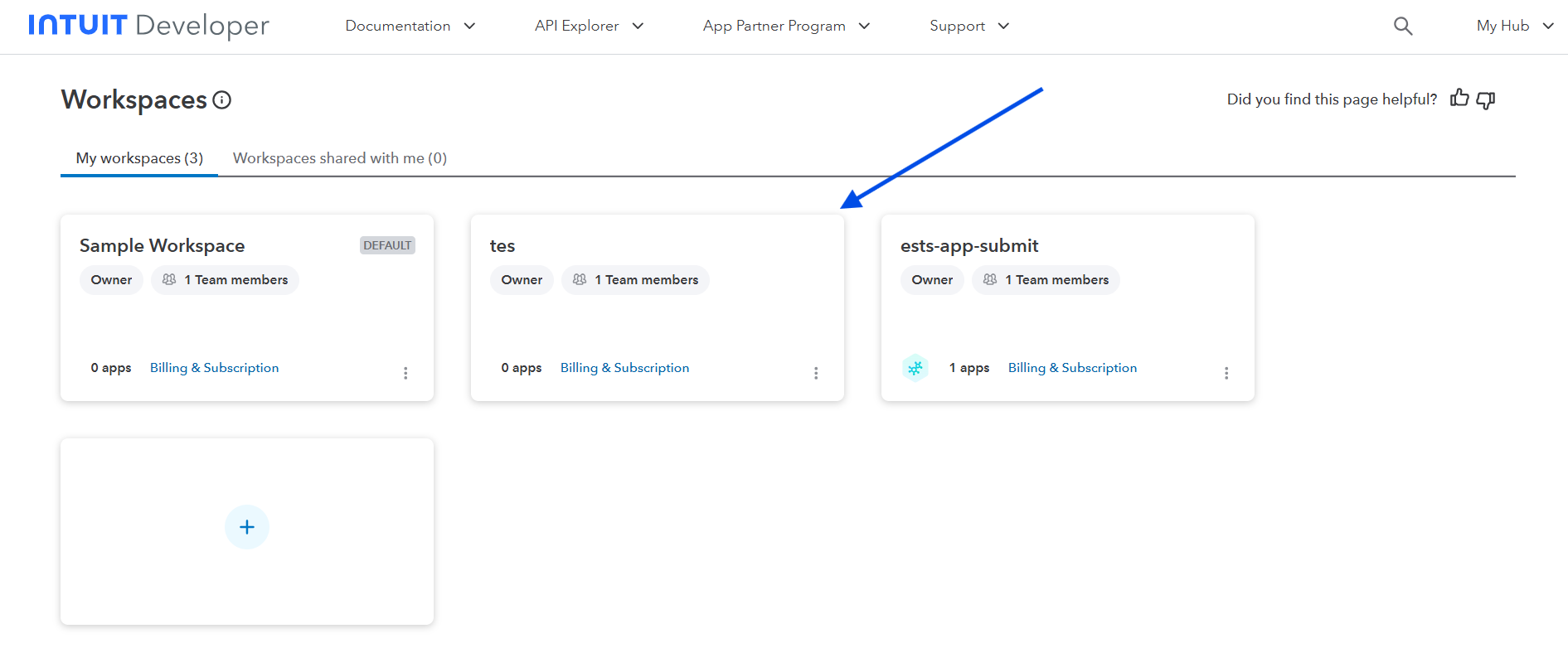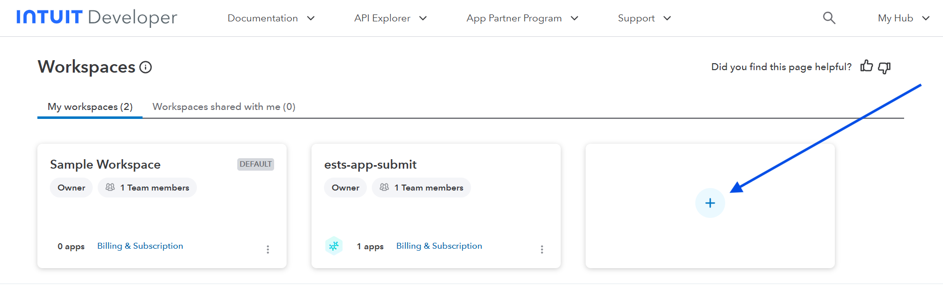 After successful login, you will redirect to QuickBooks developer workspace page. Click on the “+” as highlighted.