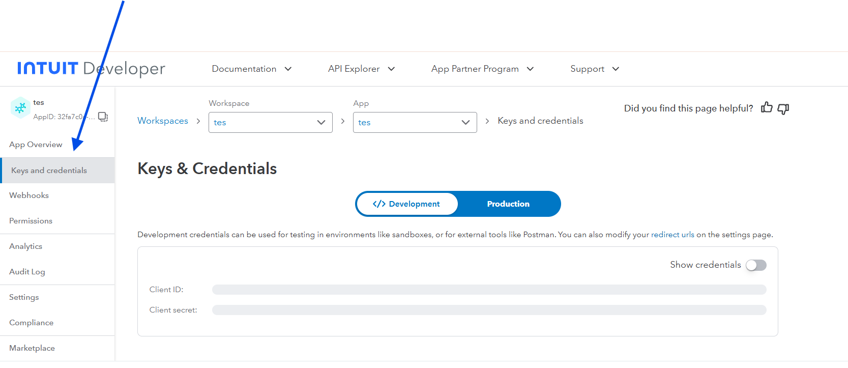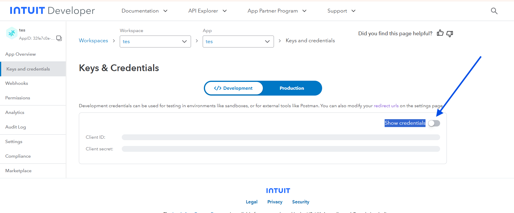 Now go back to Keys and credentials. Here click on toggle "Show credentials" to view your Client ID and Client Secret.