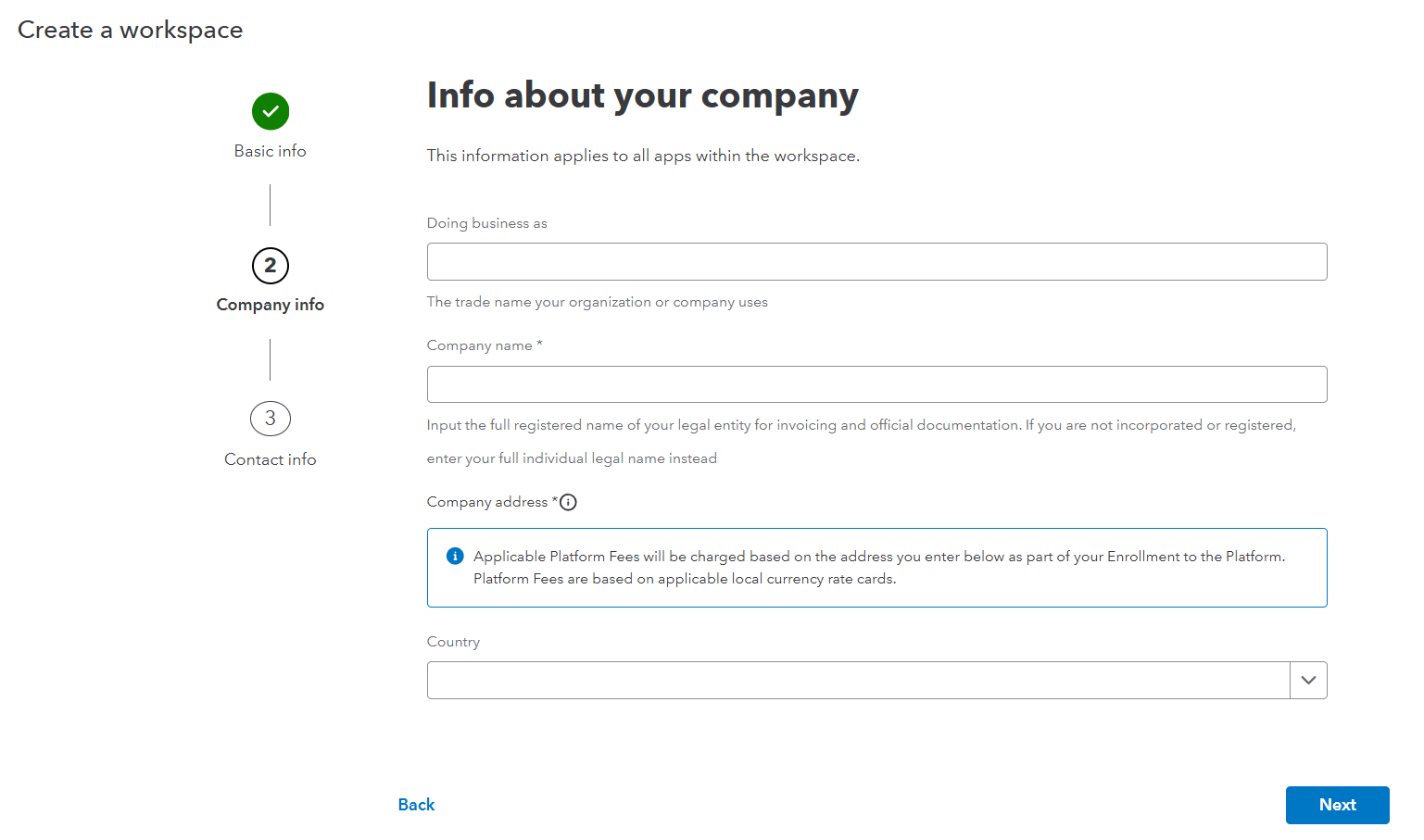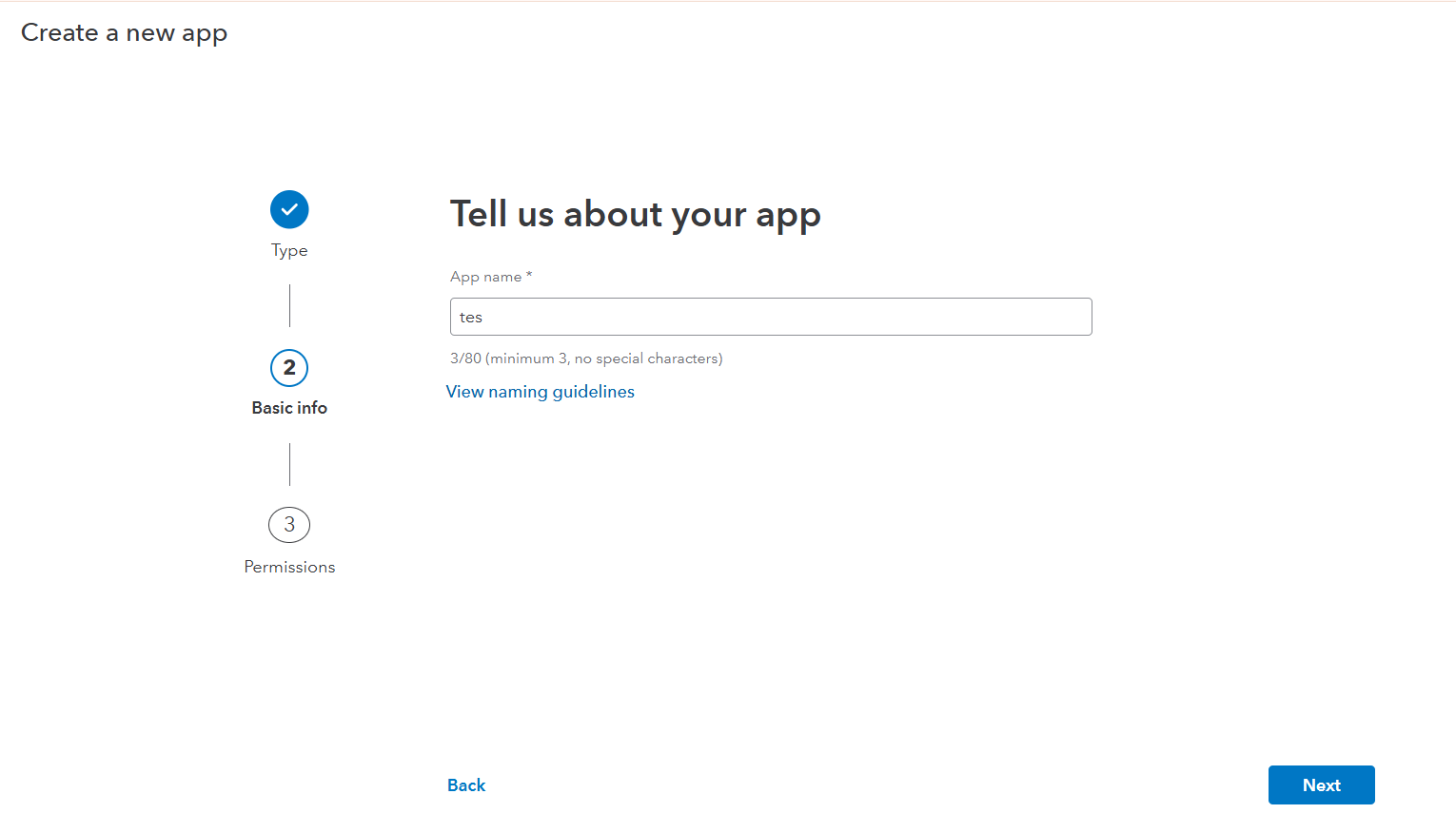 Enter details to create app.