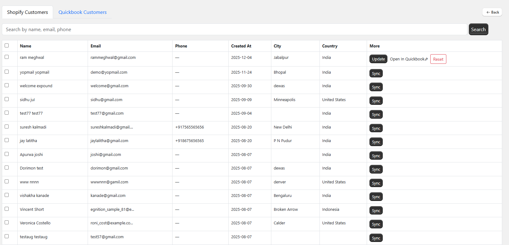 As you can see in above image. You can see “Shopify Customers” as well as “QuickBooks Customers” in separate tab.
