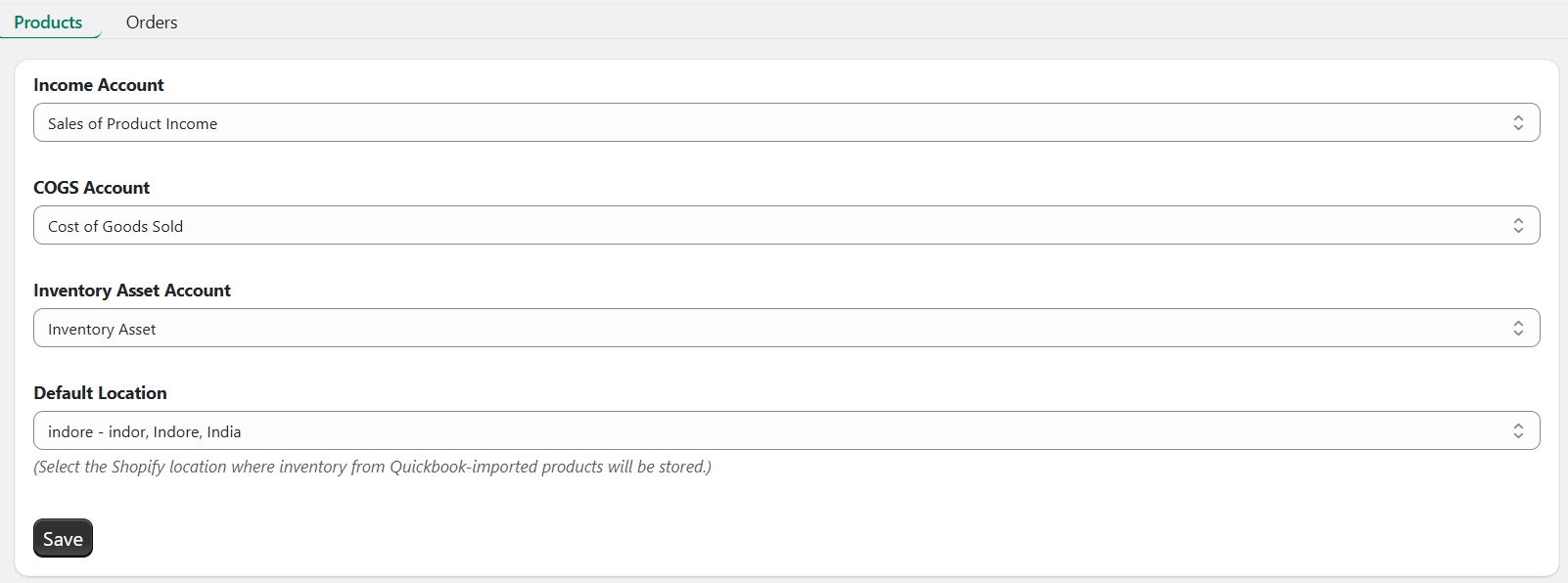 setup products tab like this and click on "save". Note the accounts settings may be vary according to region and QuickBooks account.