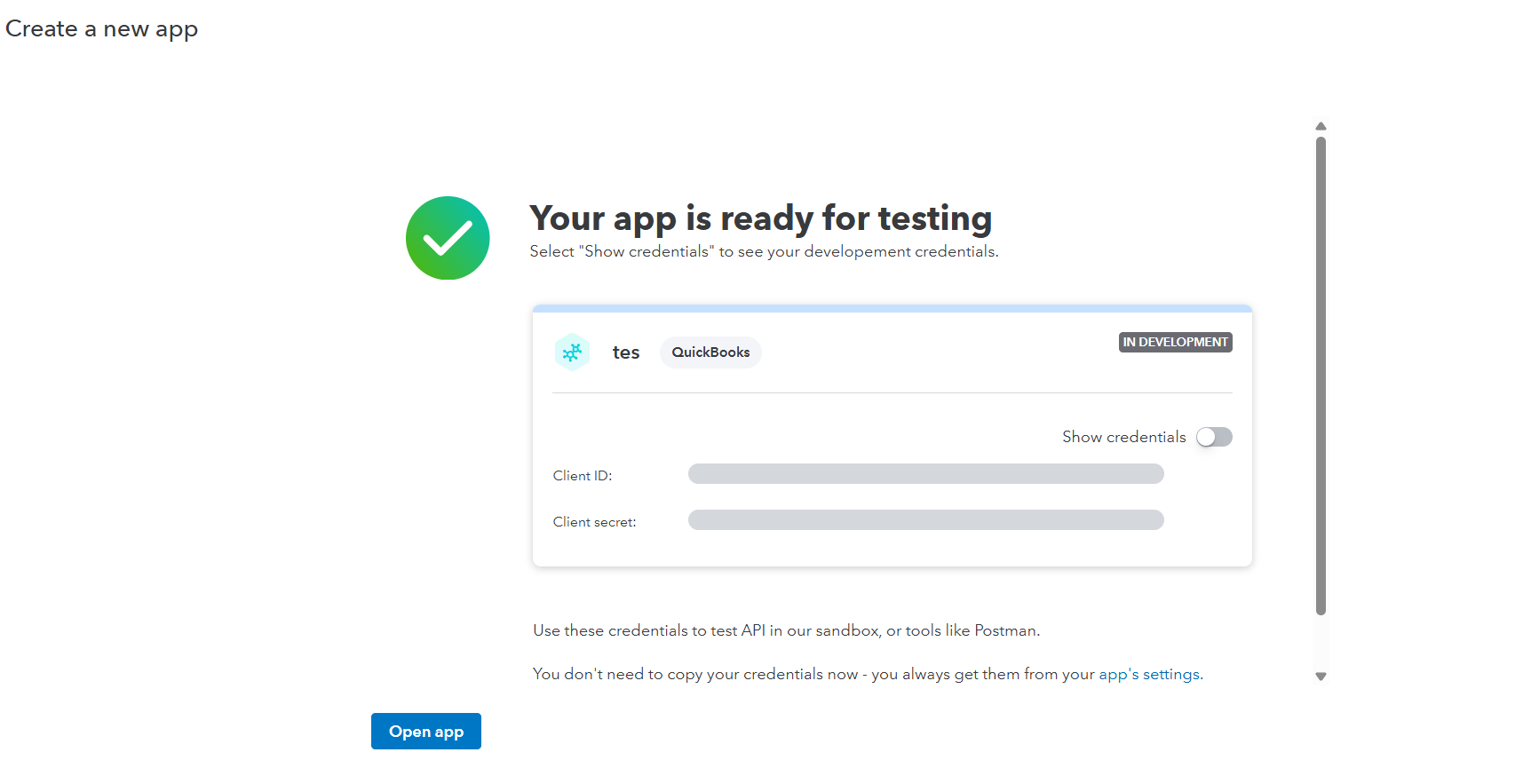 You will redirect to official QuickBooks developer account page.