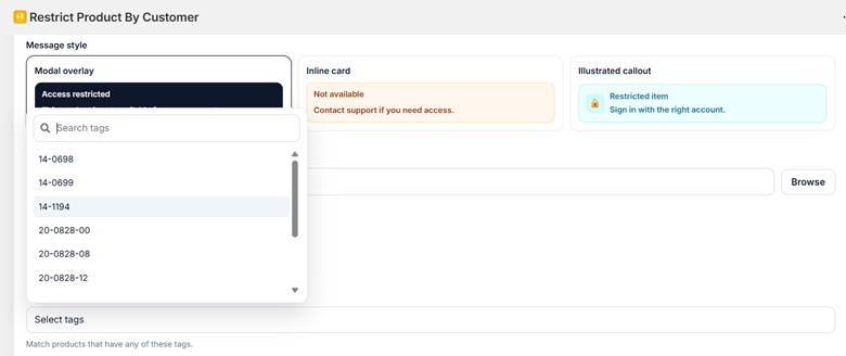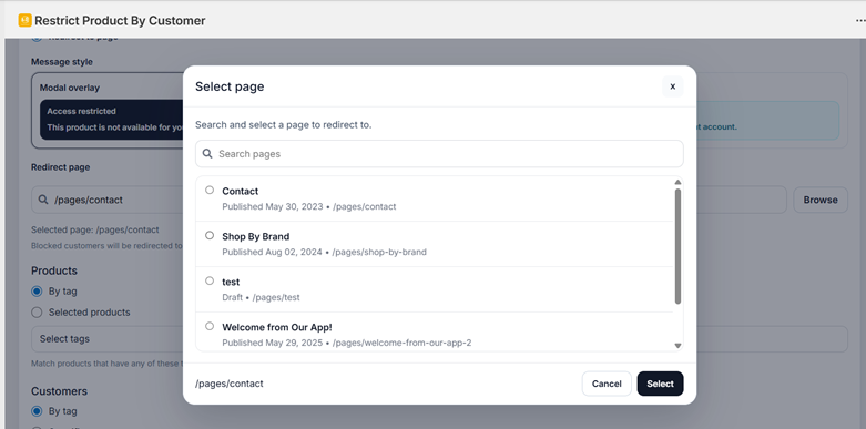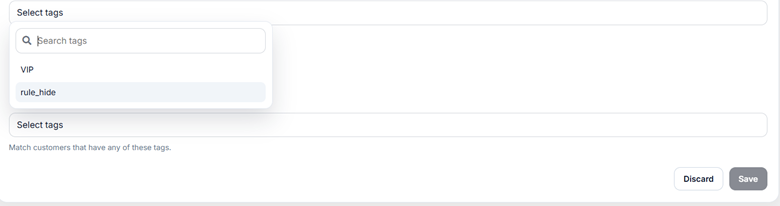 rules, Customer selection, Customer tag rules, Message or redirect control,