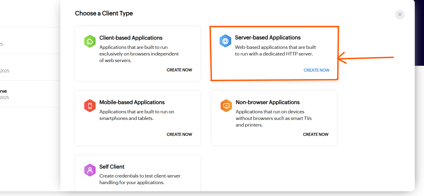 3. You will be prompted to choose a client type. Select Server-based Application.