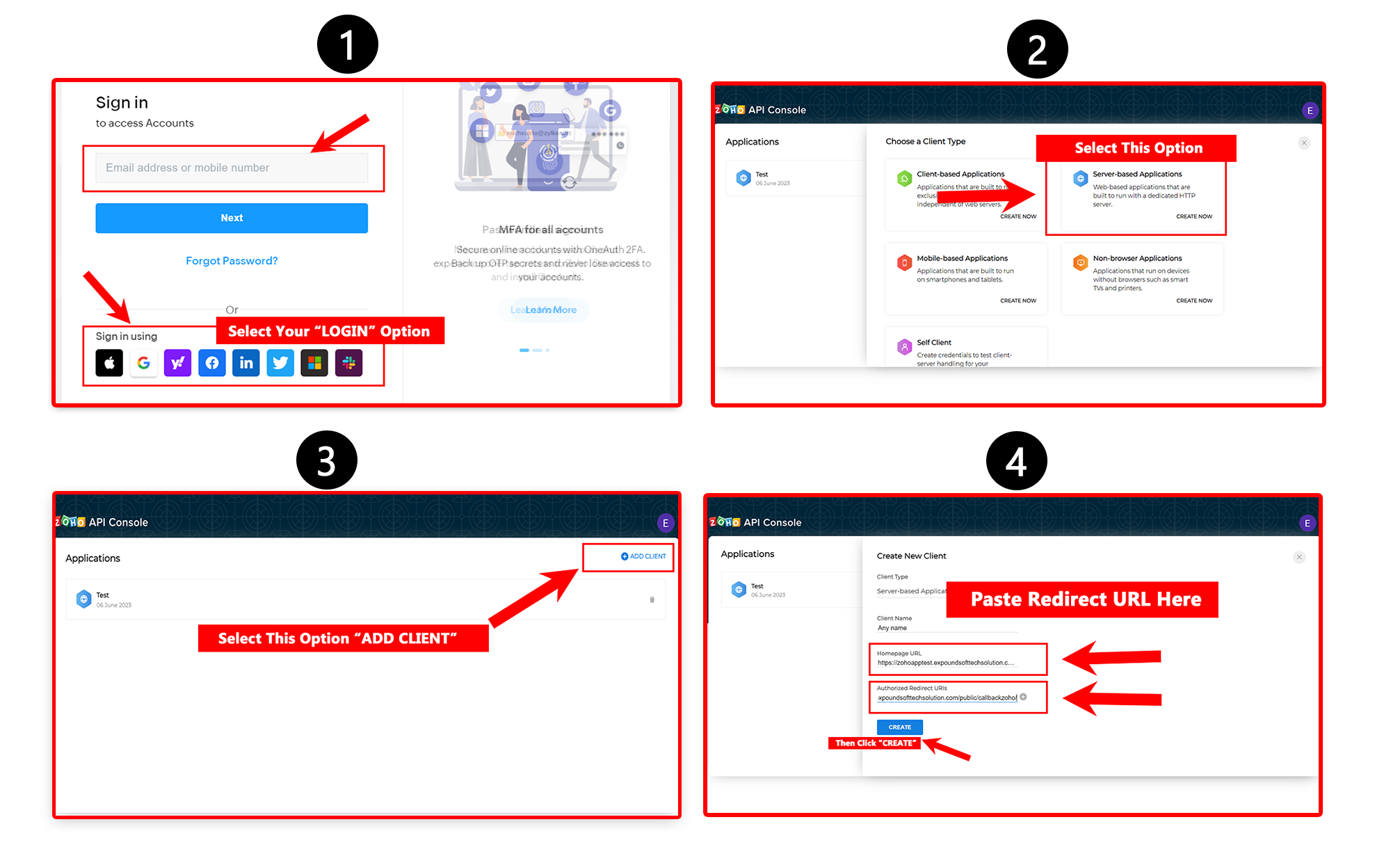 On the right side of the Zoho Connect page, you will find instructions to help you generate Zoho API credentials.